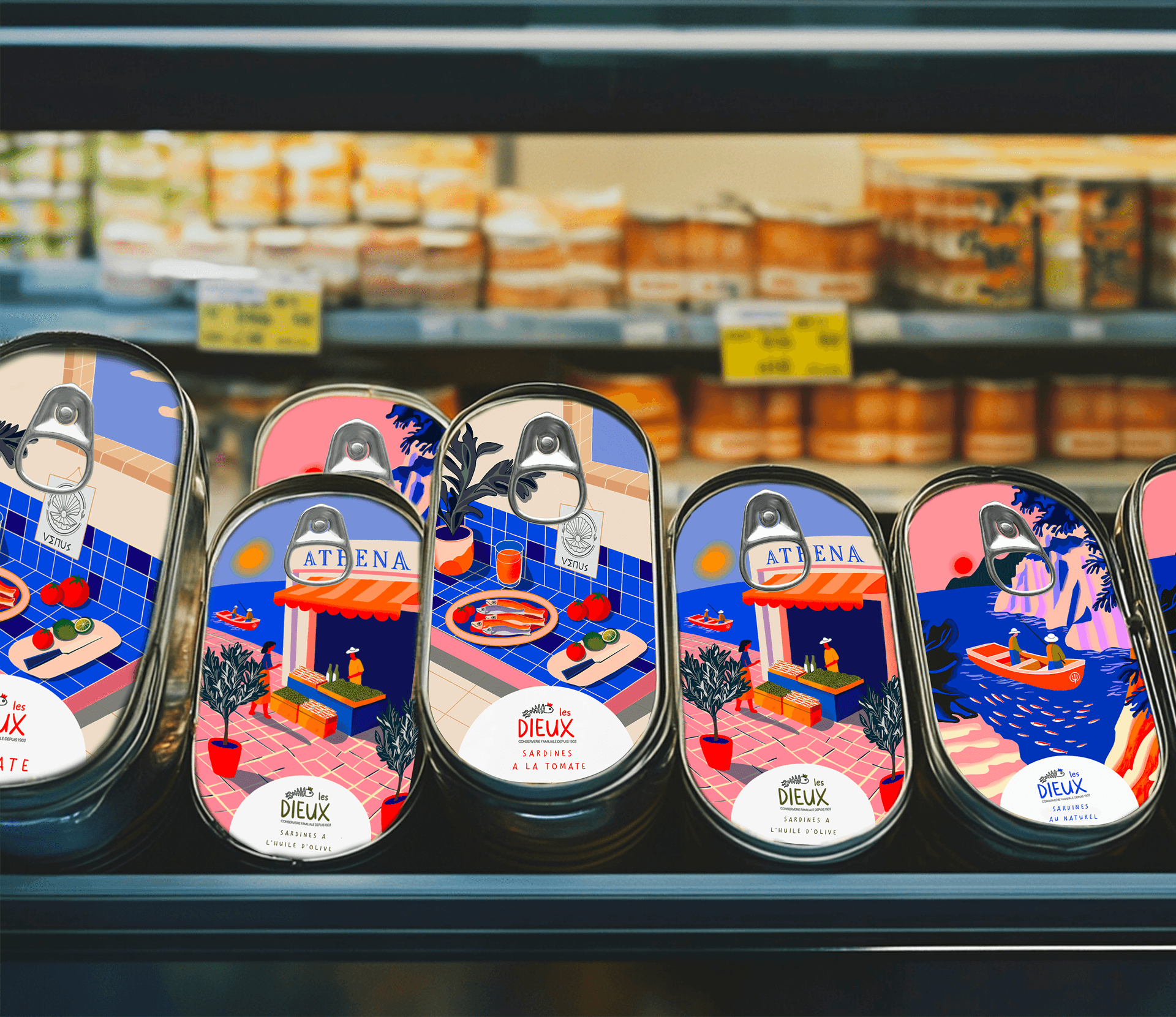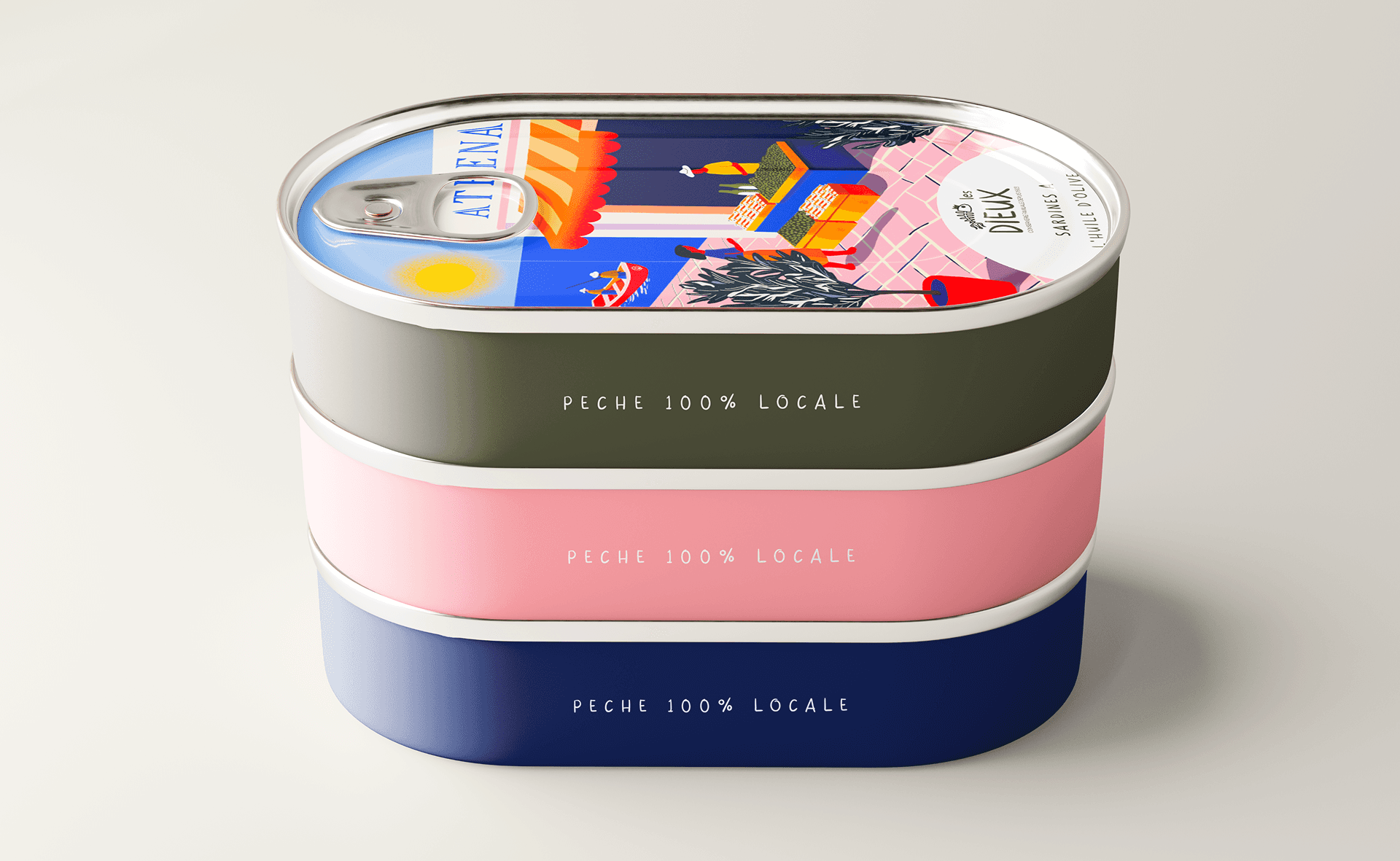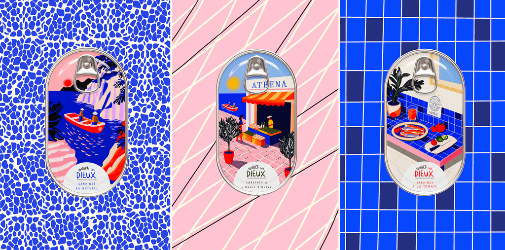 J'ai retracé la vie de la sardine au travers des packagings, en ajoutant à chaque fois une touche évoquant la mythologie.