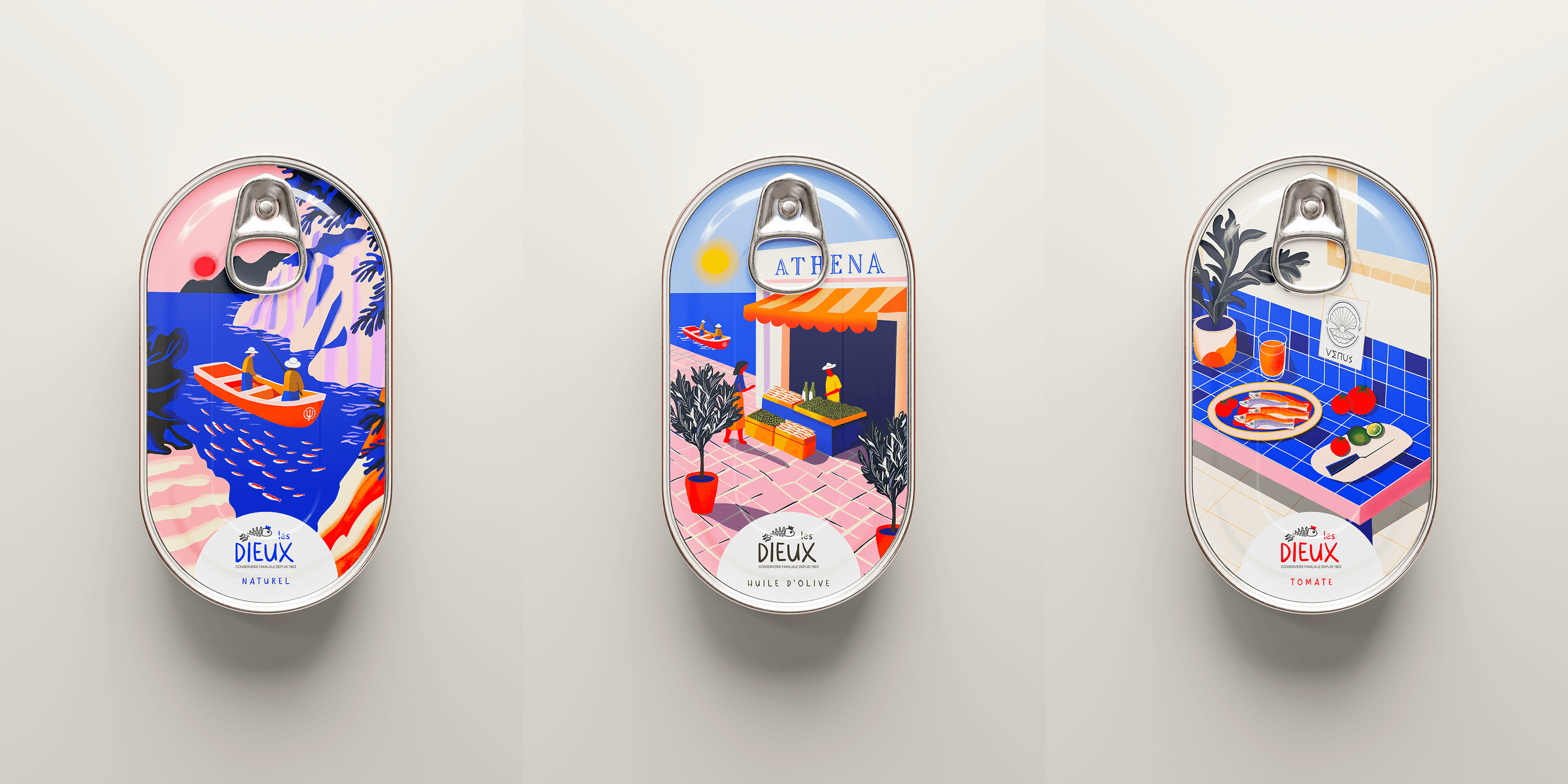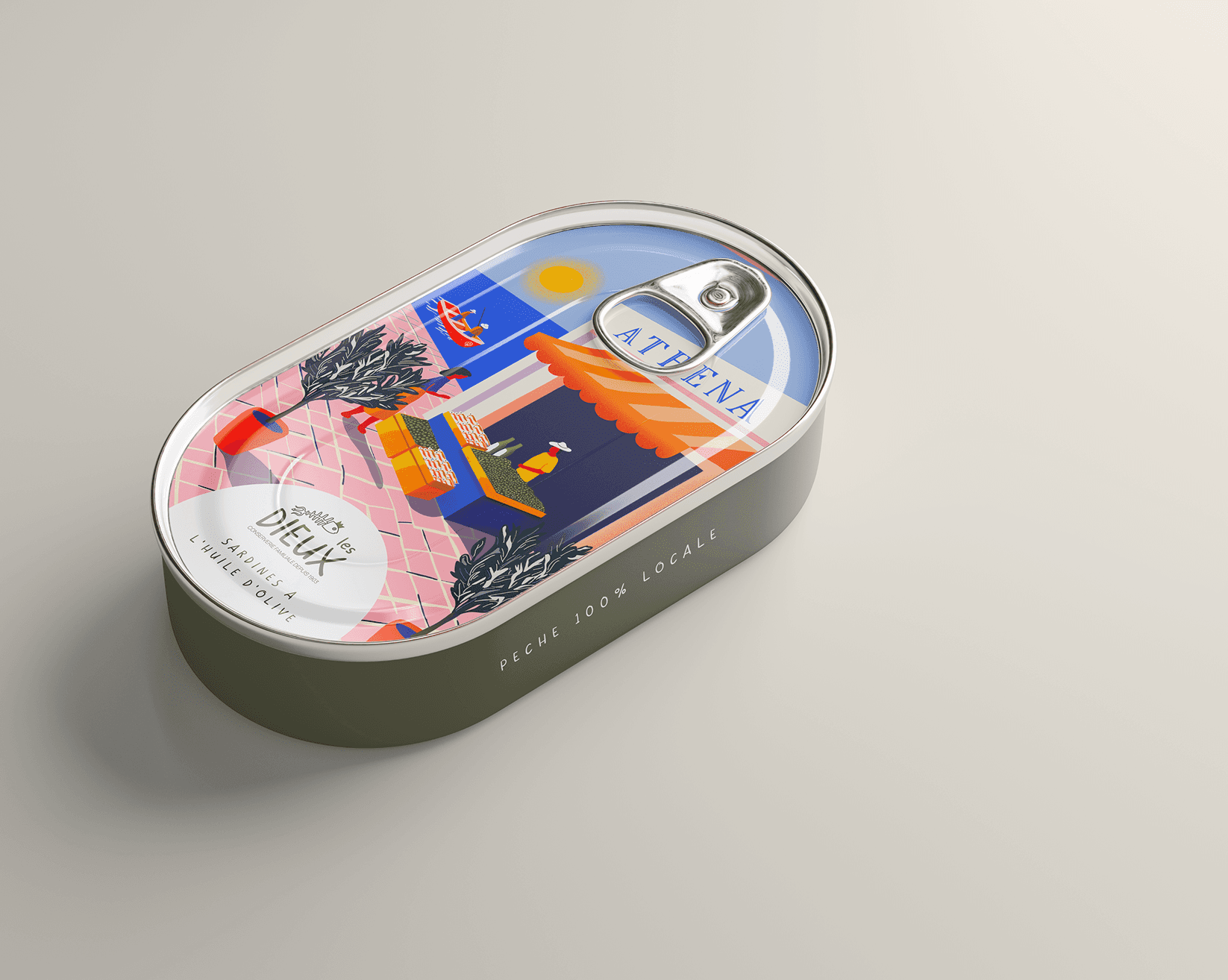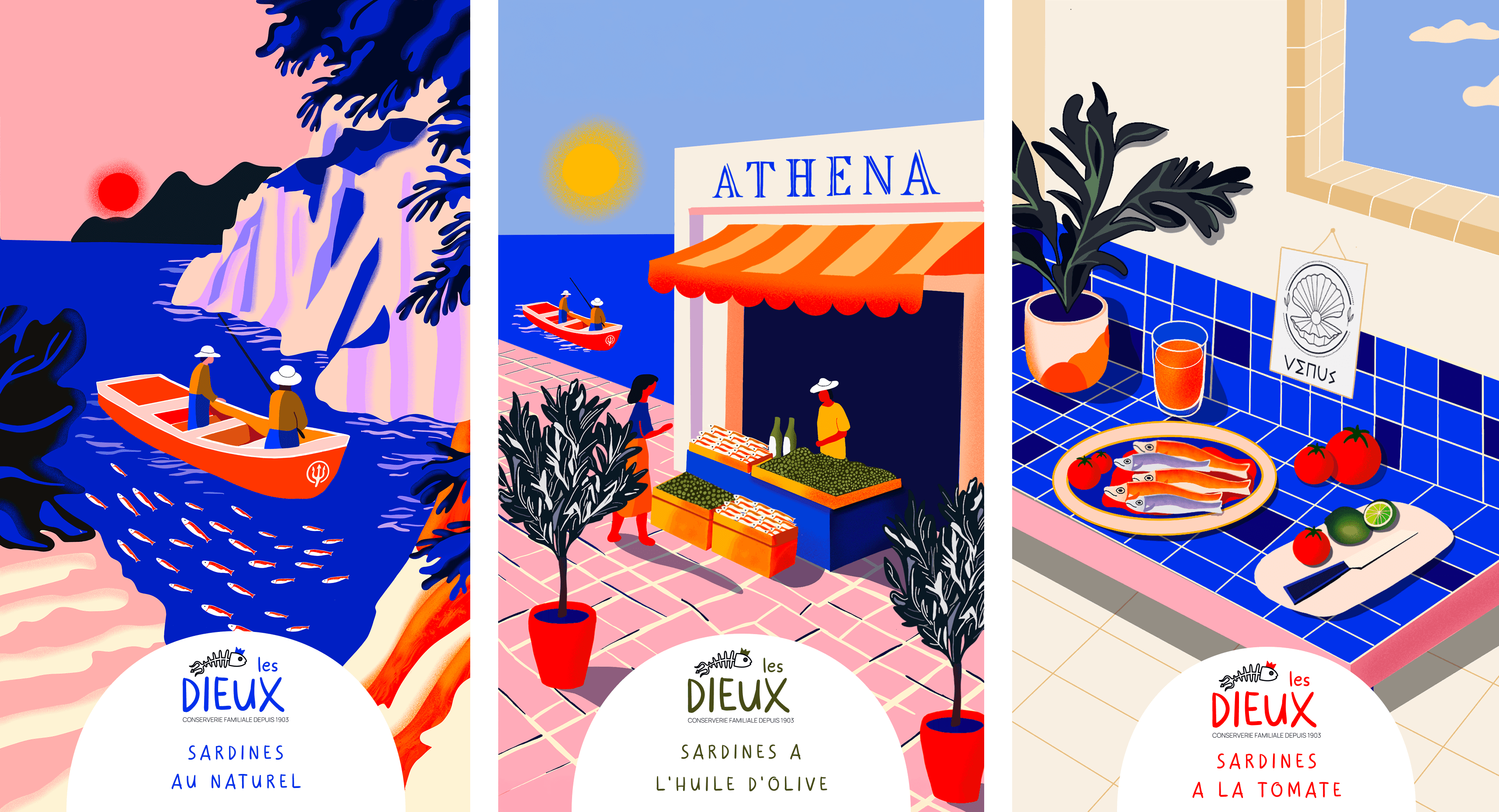 J'ai retracé la vie de la sardine au travers des packagings, en ajoutant à chaque fois une touche évoquant la mythologie.