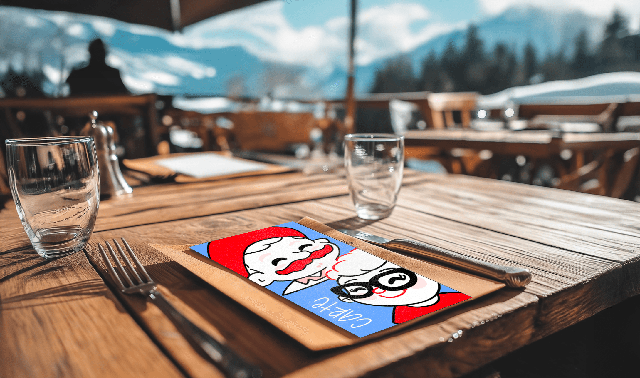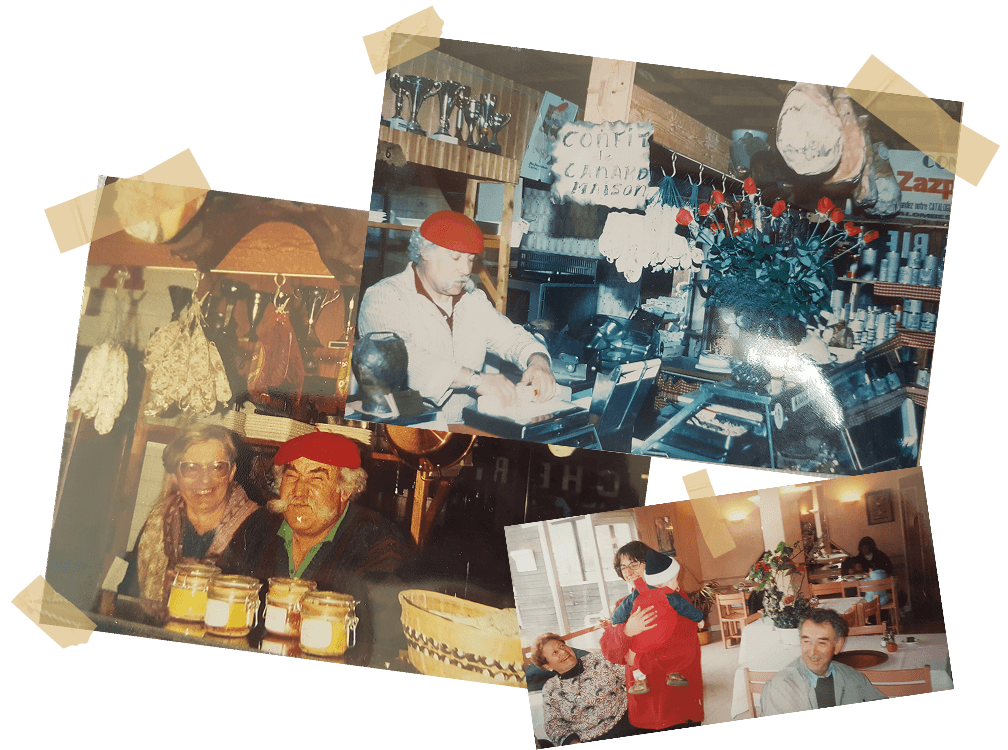 J'ai commencé par me plonger dans les photos du restaurant. J'ai ainsi pu m'imprégner du lieu et repérer les éléments clés à retrouver dans le design. J'ai personnifié le lieu en créant des mascottes à l'image de mes grands-parents. Cela permet de créer un souvenir mémorable et de renforcer le lien émotionnel.