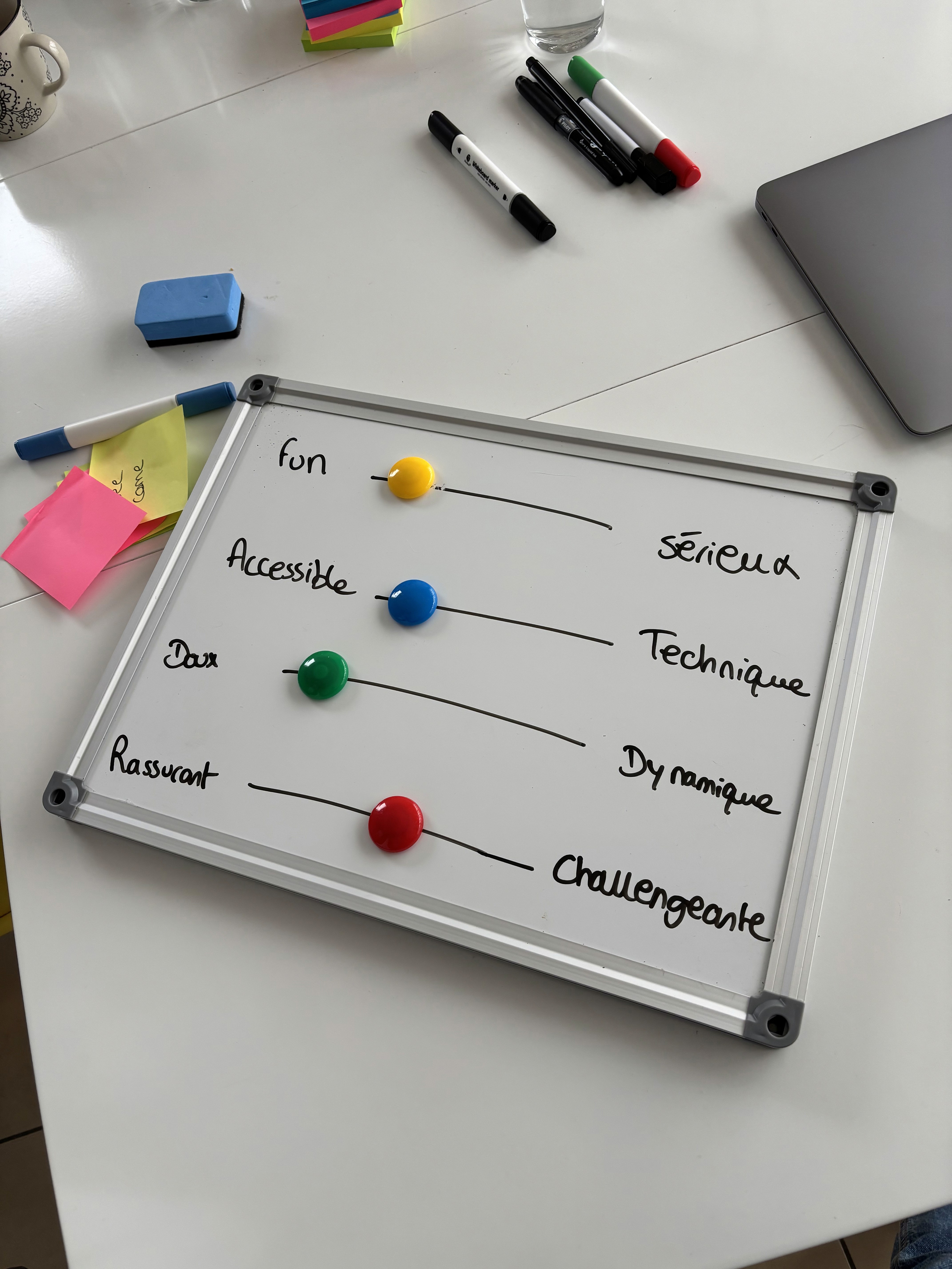 Nous avons commencé notre collaboration lors d'un atelier stratégique. Durant une demi-journée, Victoria et moi avons analysé sa cible, ses concurrents et établit sa direction stratégique : ses valeurs, son positionnement, sa vision, son storytelling etc.