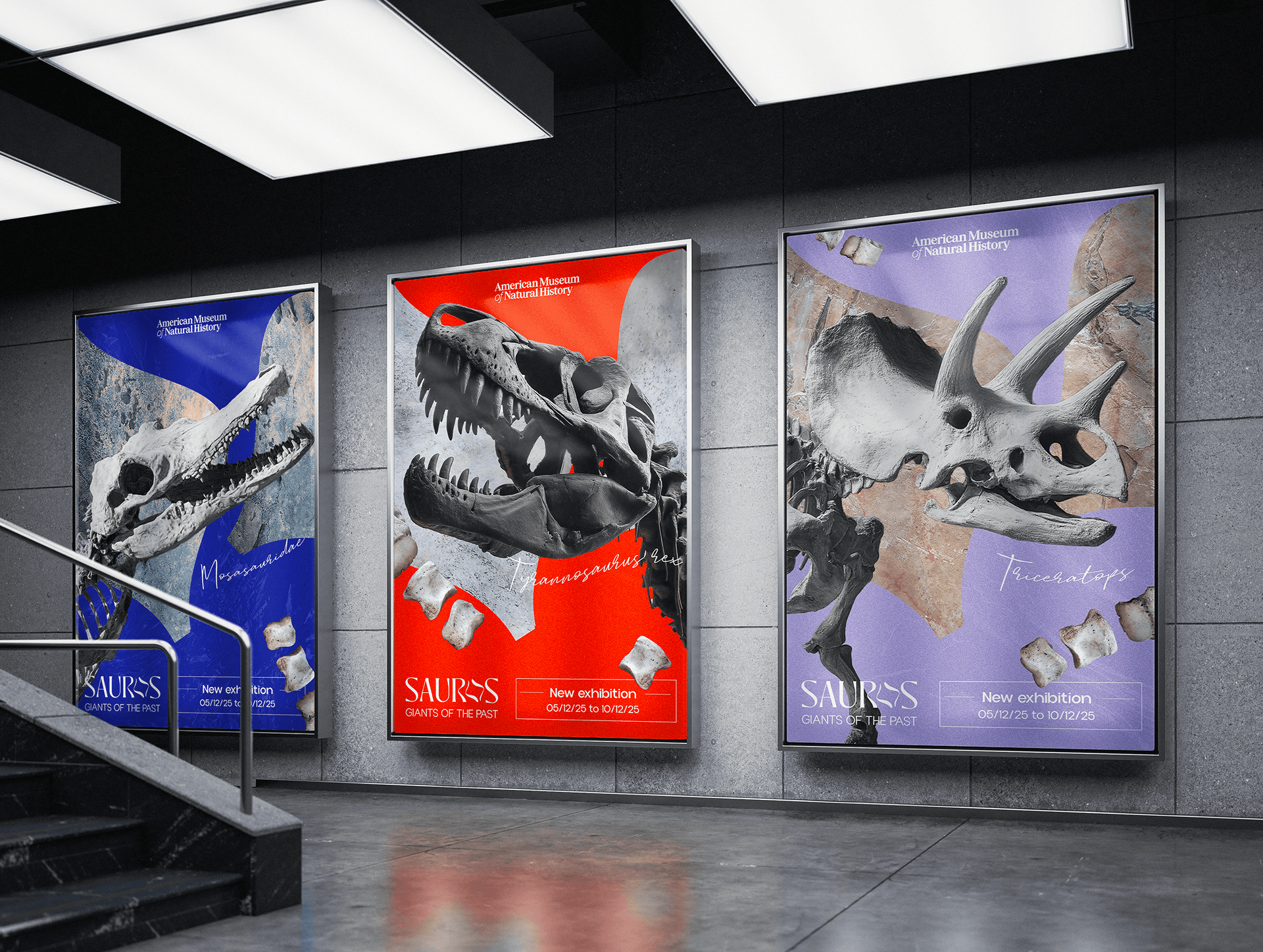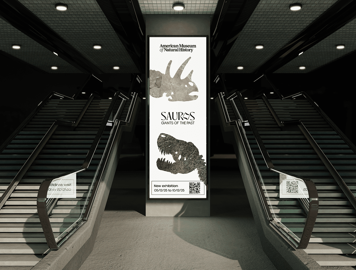 Sauros, c'est une exposition sur les dinosaures, proposée par l'American Museum of Natural History de New York. J'ai créé toute la direction artistique de l'évènement, ainsi que le merch et la campagne de communication print.